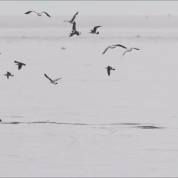 薄曇りで波風も弱く、探しやすいコンディションです(脇野沢は探しやすい日だけ遠征しているので当然ですが)。夜明け前から、狩りをする群、フェリーで遊ぶ群、湾内外に移動する群を多数確認しました。脇野沢港よりむつ寄りや、肉眼で目視できる(呼吸音が聞こえる)距離で ...