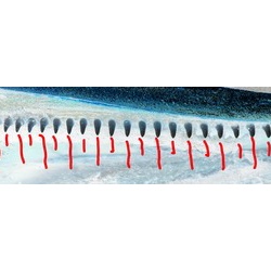 カマイルカの歯の数ですが、資料によって約120本だったり、約130本だったりします。自分の目で確認した2ケース(デッドストランディング個体、某水族館の骨格標本)は約130本だったので、ガイド資料や動画では約130本としています。下は画像反転したデッドスト ...
